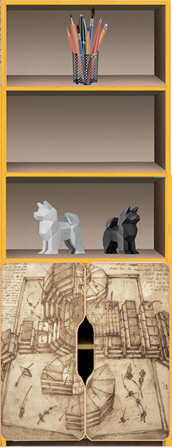 Шафа напівзакрита 4-дверна. Виготовлена з ламінованої ДСП: корпус 16 мм, фасад 18 мм. Задня стінка виготовлена з білої ламінованої ДВП товщиною 3 мм. Оклейка: ПВХ жовтого кольору товщиною 1 мм.