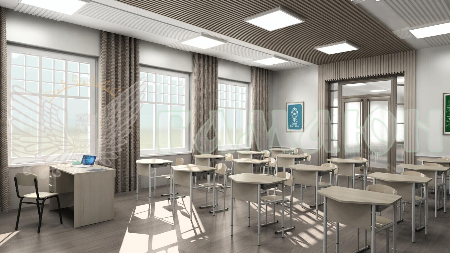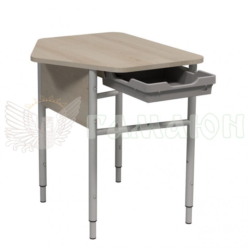 Стіл складається з стільниці ергономічної форми (заокруглені кути з усіх сторін) та екрану між металевими каркасами. На бокових стійках каркасу закріплені гачки. Стіл регулюється по висоті: 640 мм (№4); 700 мм (№5); 760 мм (№6); 820 мм (№7).