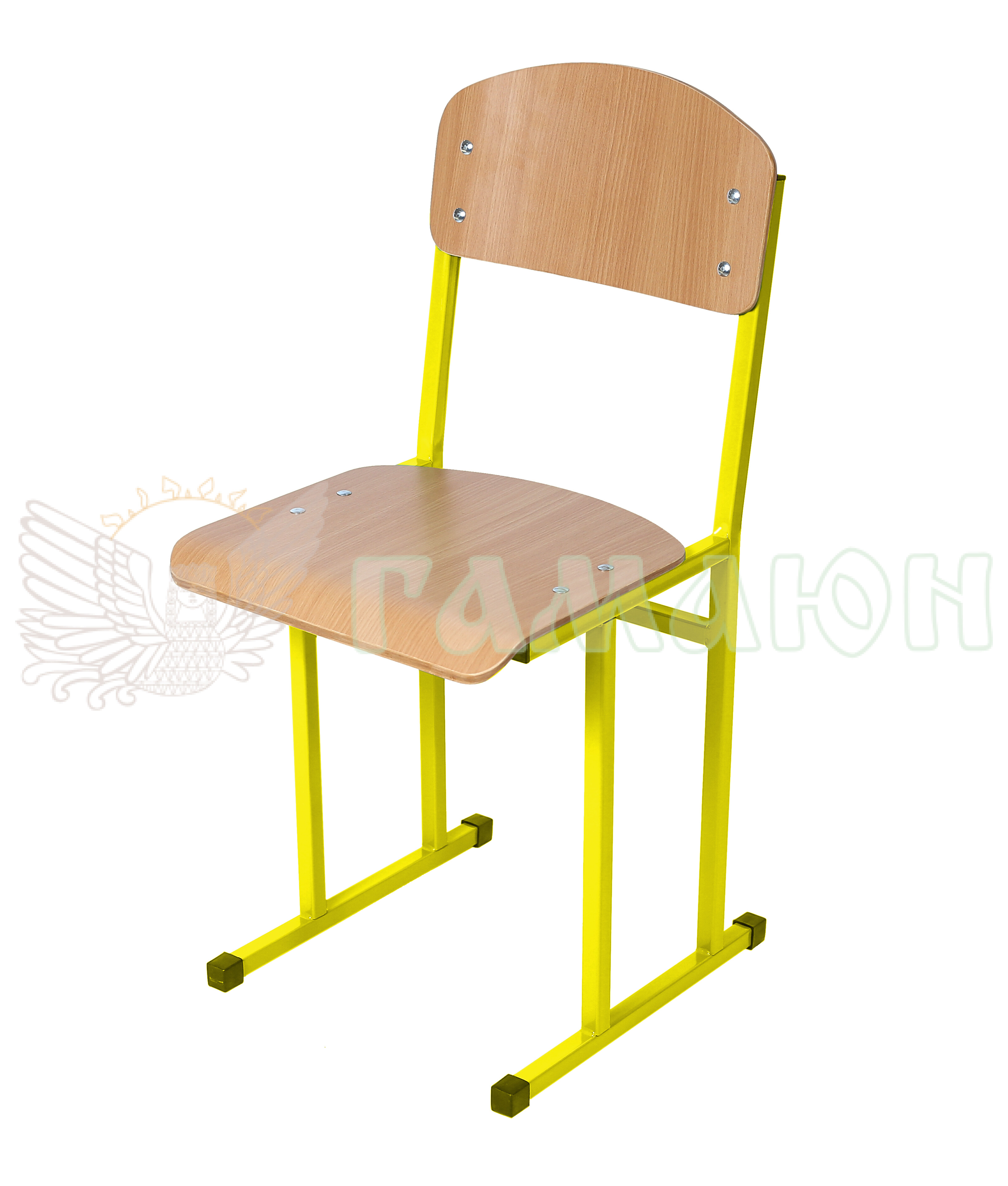 Сидіння та спинка виготовлені з гнуто-клеєної фанери (товщиною 9-10 мм) та вкриті пластиком HPL товщиною 0,4-0,5 мм. Кути сидіння і спинки та передня крайка сидіння мають радіус заокруглення для запобігання травмування. Каркас стільця виготовлено з квадратної труби 20х20х1,2 мм з нанесенням порошкової фарби. Спинка та сидіння  кріпляться до каркасу гвинтами та гайками. На торцях каркасу закріплені пластикові наконечники, які запобігають травмуванню учнів та пошкодженню підлоги.