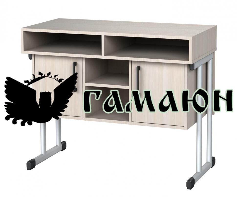 Стіл складається зі стільниці та підвісної тумби. Під стільницею розташовані дві ніші. Тумба має відкриту полицю з регулюванням та дві полиці з регулюванням, що закриті дверцятами.