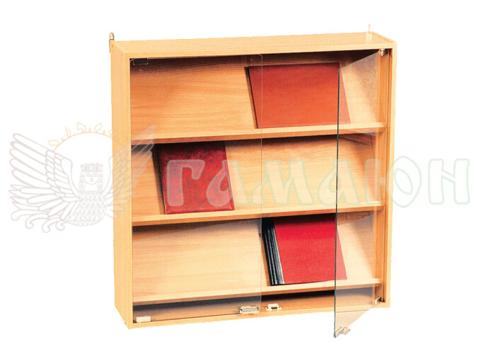 Має три внутрішні секції, що утворюються горизонтальними та похилими полицями, та металеві підвіски для навішування.