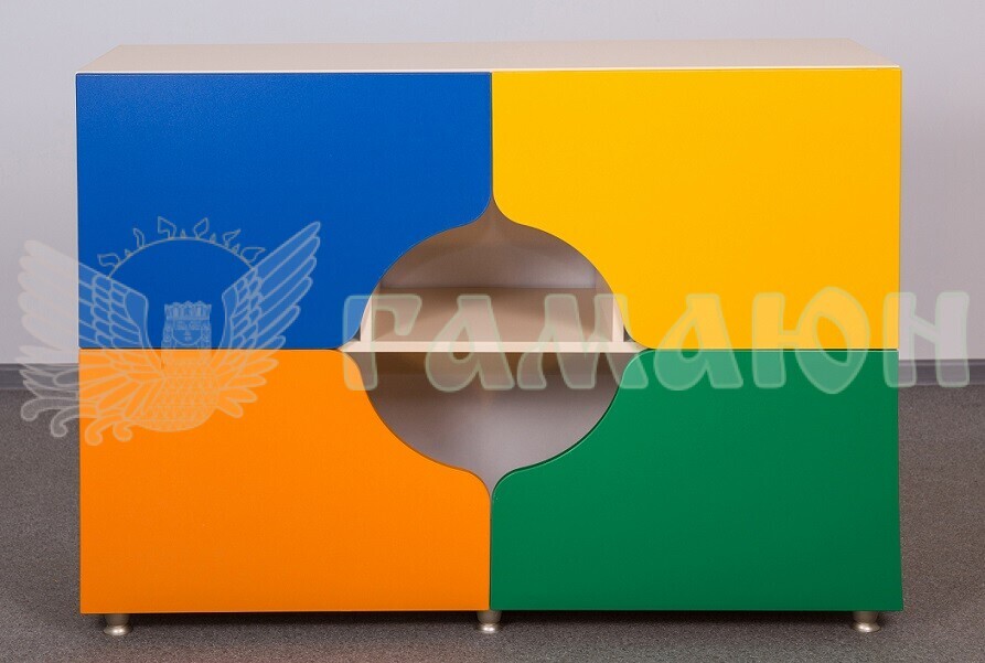 На дверцятах присутні фігурні вирізи, що дозволяє підвищити безпеку дітей, шляхом відмови від використання виступаючих ручок.