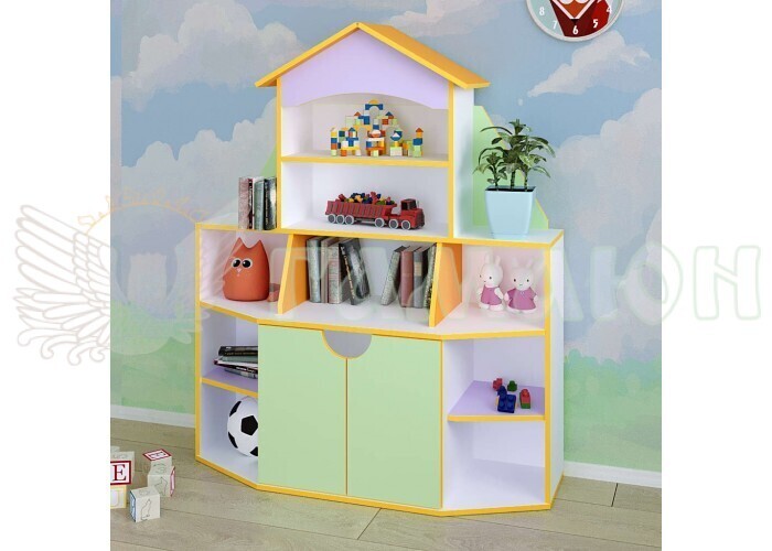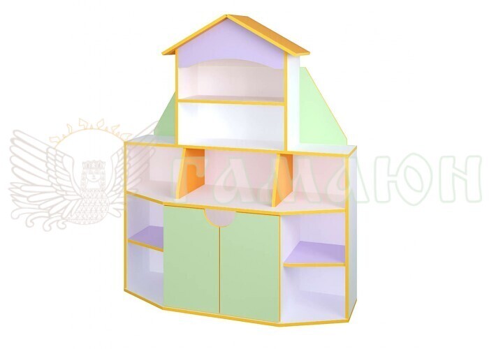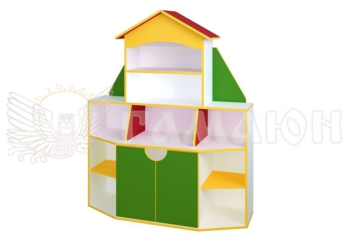 Дитяча стінка призначена для обладнання дитячого садка.Стінка складається із 5 секцій, скріплених між собою міжкорпусними стяжками. Меблі виготовлені з екологічно чистої ДСП товщиною 16 мм класу Е1, призначеної для виготовлення дитячих меблів. На торці нанесена кромка ПВХ товщиною 0,6 мм при високотемпературному режимі на кромкооблицювальному верстаті, що забезпечує максимальний захист країв від вологи та механічних пошкоджень. Базовий колір кромки – жовтий. Основні деталі корпусу за замовчуванням виготовлені із ламінованої ДСП білого, жовтого та зеленого кольору, також можна використовувати ДСП синього кольору без подорожчання меблів. За бажанням дані кольору можна замінити на будь-який інший колір ДСП, у цьому випадку вартість розраховуватиметься індивідуально. Усі матеріали підтверджені сертифікатом якості.