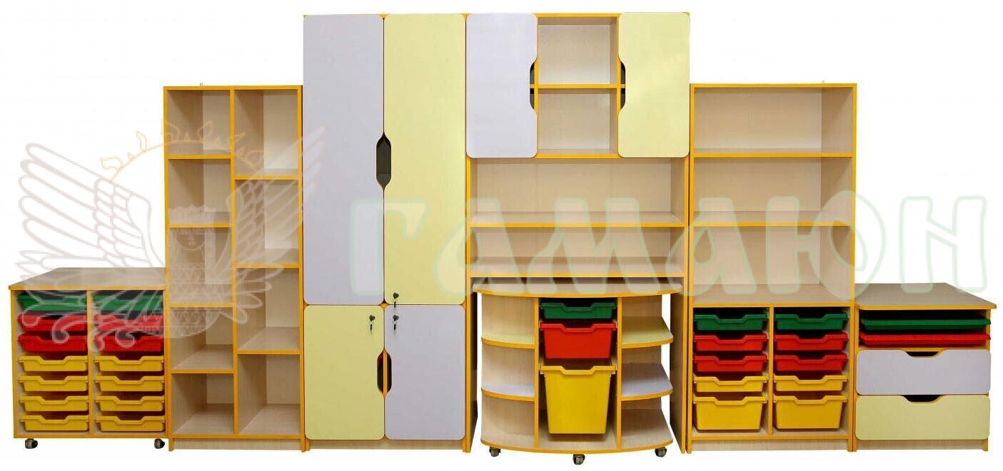 Елемент з відкритими полицями для зберігання дидактичного матеріалу, книг, папок, особистих речей дітей. Елемент виготовлений з ламінованого ДСП 16 мм.