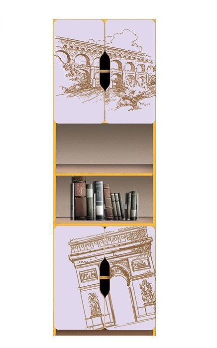 Шафа напівзакрита 4-дверна. Фасади та корпус шафи виготовляються з ламінованої ДСП товщиною 16 мм. Задня стінка виготовляється з білої односторонньої ХДФ товщиною 2,5 мм. Оклейка: крайкова стрічка ПВХ жовтого кольору товщиною 1 мм.