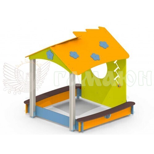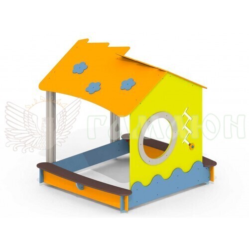 Пісочниця «Будиночок» призначена для розвиваючих ігор дітей у віці від 1 року. Має декоративний елемент у вигляді ілюмінатора. Накрита пісочниця захистить дітей від сонця і дощу. На стінці пісочниці знаходиться елемент для розвитку моторики рук.