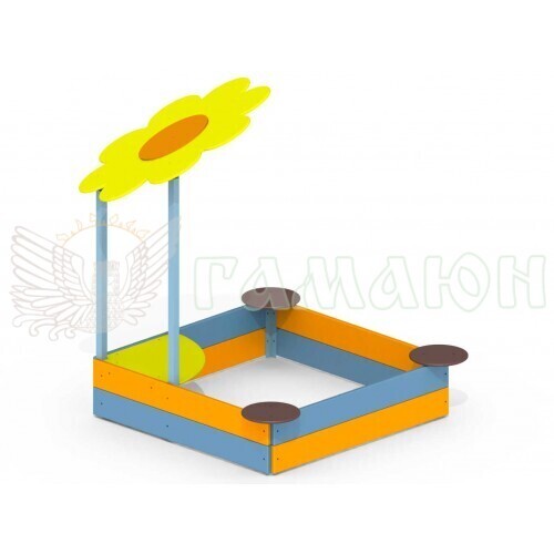Барвиста пісочниця «Ромашка», розрахована на дітей від 1 року. Наявність 3 сидінь дозволить дітям відпочити, а на столику можна розкласти іграшки. Квітка, яка служить декоративним елементом, також частково захищає від сонця.