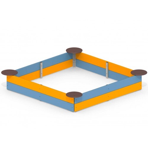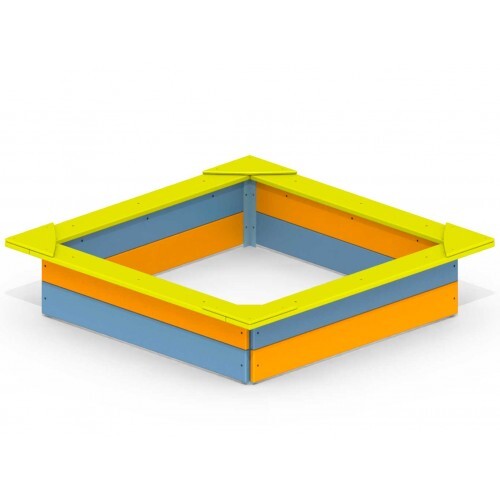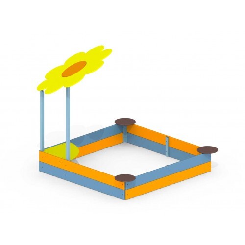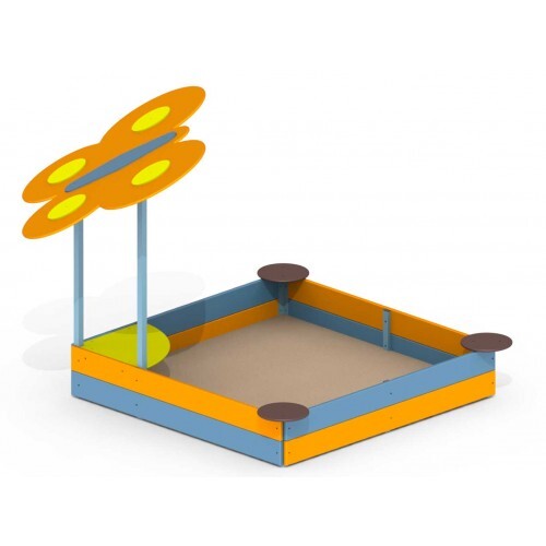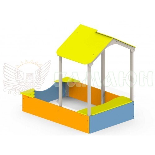 Барвиста пісочниця з навісом призначена для дітей віком від 1 року. Вона складається з пісочниці, частина якої закрита дахом, що захищає від жаркого сонця дощу. По кутах розташовані 2 сидіння, а під дахом – невеличкий столик.
