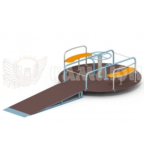 Карусель створена для дітей з порушенням опорно-рухового апарату, якою одночасно можуть користуватись до 6 дітей. Спеціальний пологий пандус допомагає дитині самостійно заїхати на майданчик, не вимагаючи допомоги з боку.