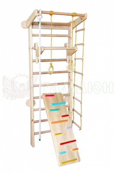 Допустимі динамічні навантаження на перекладини шведської стінки і турнік – 100 кг, на мотузковий набір – 60 кг, на дитячий турнічок – 60 кг, на дошку – 80 кг.