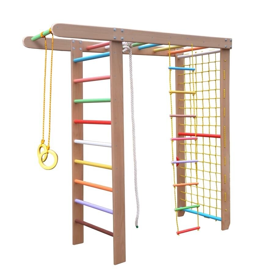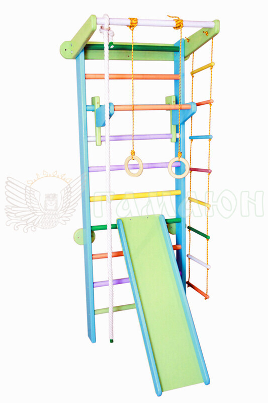 Допустимі динамічні навантаження на перекладини шведської стінки і турнік – 100 кг, на мотузковий набір – 60 кг, на дитячий турнічок – 60 кг, на дитячу гірку – 50 кг.