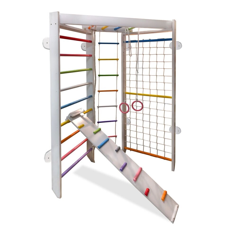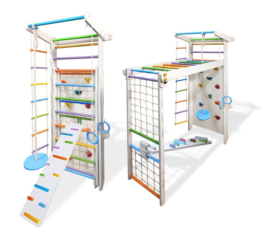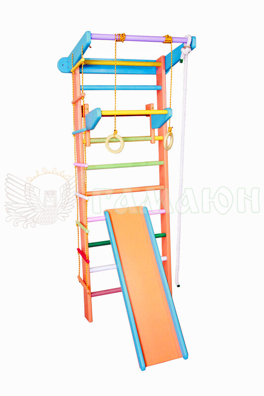 Допустимі динамічні навантаження на перекладини шведської стінки і турнік – 100 кг, на мотузковий набір – 60 кг, на дитячий турнічок – 60 кг, на дитячу гірку – 50 кг.