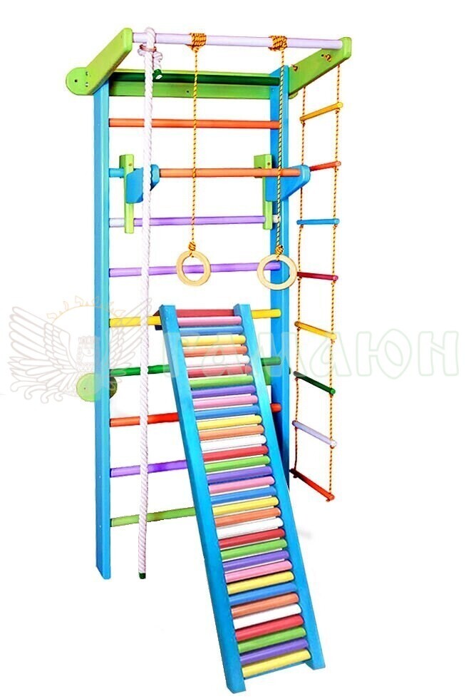 Допустимі динамічні навантаження на перекладини шведської стінки і турнік – 100 кг, на мотузковий набір – 60 кг, на дитячий турнічок – 60 кг, на дошку – 50 кг.