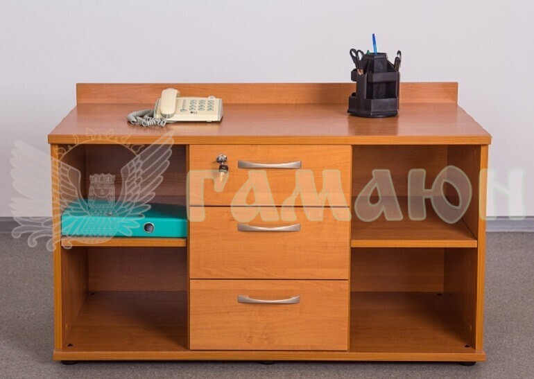 Тумба на роликах. Шухляди мають металеві ручки та роликові направляючі. Верхня кришка виготовляється з ДСП товщиною 22 мм. Всі інші елементи виготовляються з ДСП товщиною не менше 18 мм. Торці кришки личкуються крайкою ПВХ товщиною не менше 2 мм, торці інших елементів – крайкою ПВХ товщиною 0,45 мм.