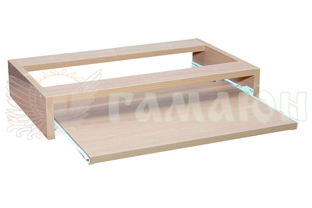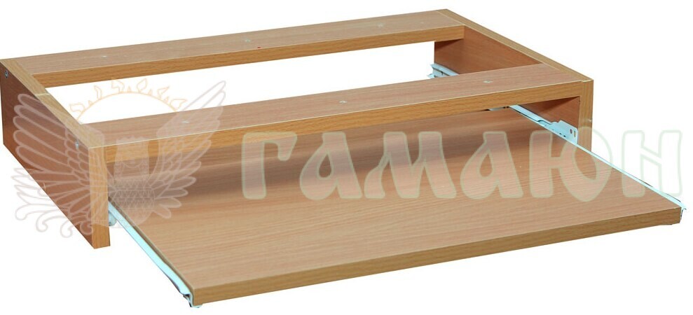 Виготовлено із ДСП ламінованої 18 мм. Стільниця - ПВХ 1 мм, стійки, екран - ПВХ 0,5 мм. Фурнітура: єврогвинти, роликові направляючі, мініфікси.