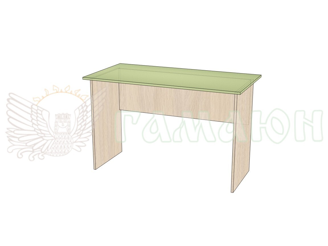 Виготовлено із ДСП ламінованої 18 мм. Стільниця оклеєна крайковою стрічкою ПВХ - 1 мм; стійки, екран, полиця - ПВХ 0,5 мм. Фурнітура: єврогвинти, мініфікси.