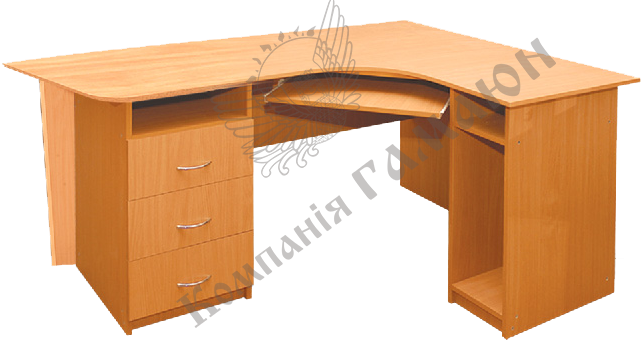 Письмовий стіл виготовляється з ламінованої ДСП товщиною 18 мм. Всі елементи оклеюються крайковою стрічкою ПВХ товщиною 1 мм.