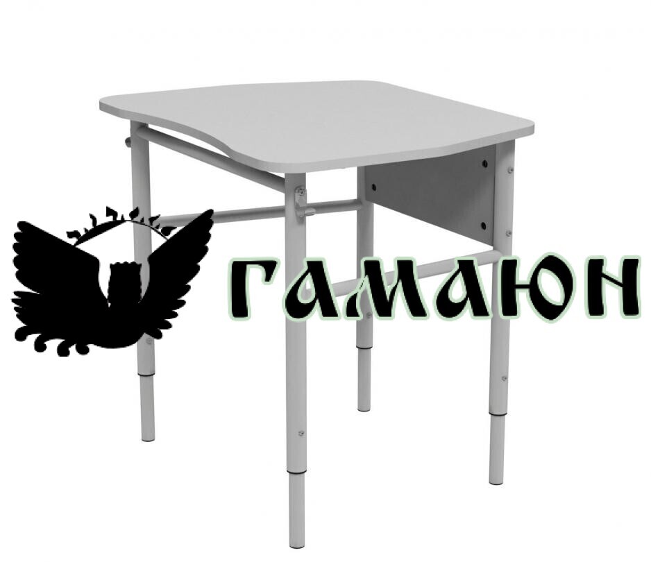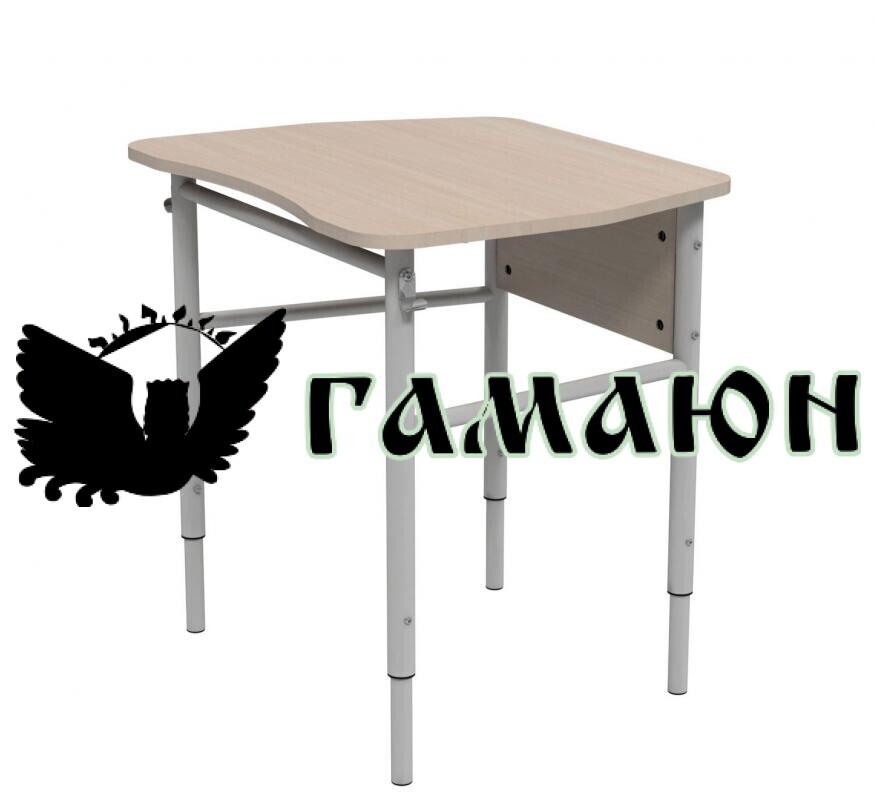 Опис виробу: Стіл призначений для облаштування учнівських місць у класах початкової та середньої школи. Завдяки шестикутній формі з округленими кутами він дозволяє створювати гнучке групове зонування в класі, сприяє кооперації між учнями й оптимізує використання навчального простору. Виріб конструктивно передбачає можливість регулювання висоти під зріст учнів різних ростових груп.