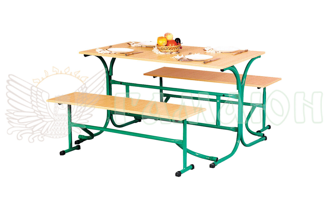 Стіл обідній з розкладними лавами (покриття столешні – пластик) призначений для комплектації їдалень у навчальних закладах.