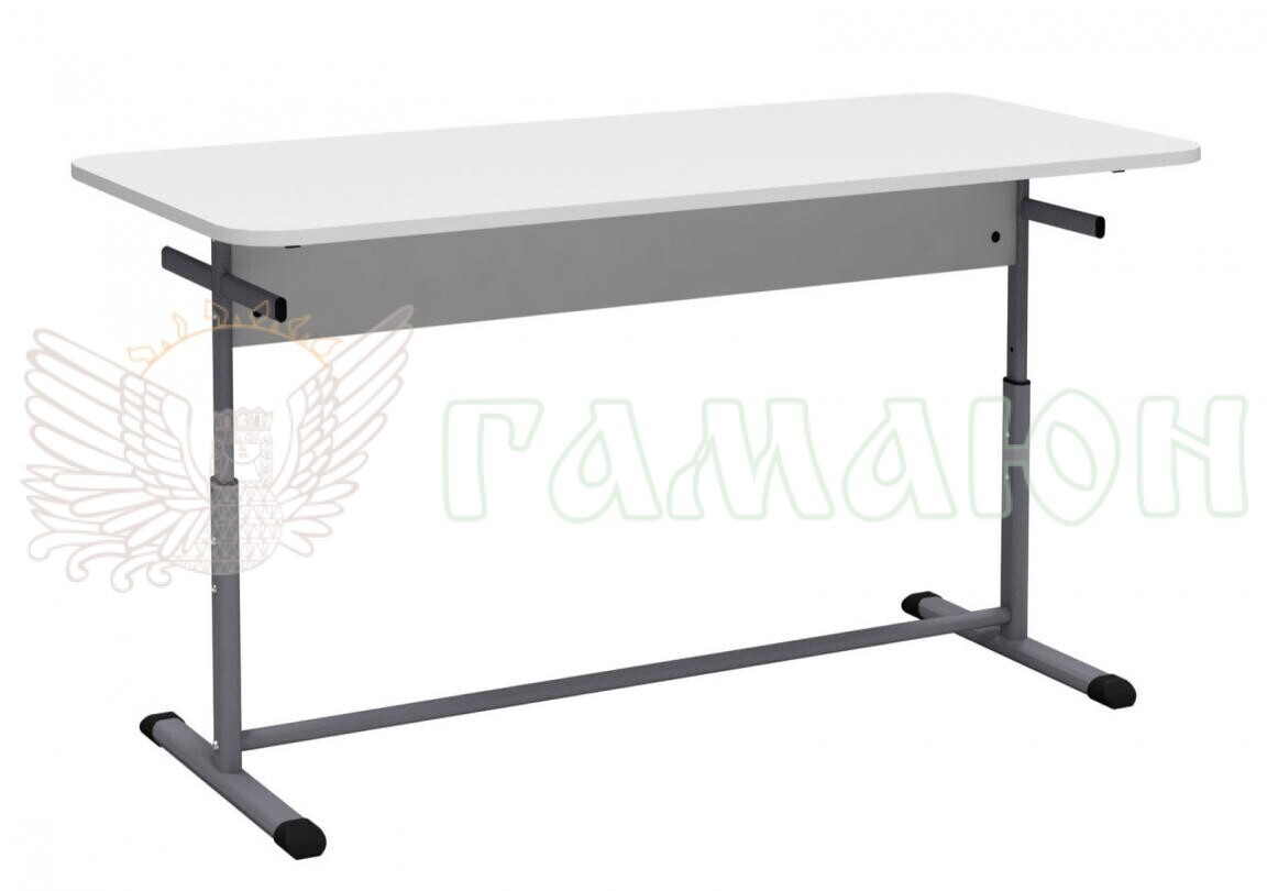 Регулювання висоти столу здійснюється за допомогою гвинтів по отворах каркасу і ніжки, між якими встановлена пластикова перехідна втулка.