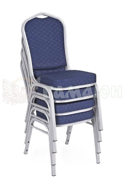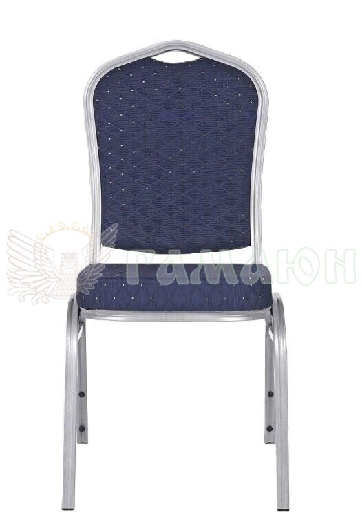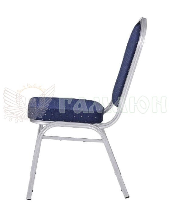 Банкетний стілець має міцну і стійку конструкцію з просічно-розсіченого сталевого профілю розміром 25х25 мм та товщиною 1,2 мм. Каркас стійкий до подряпин і cколів завдяки металевому порошковому покриттю. Сидіння крісла виготовляється з пінополіуретану товщиною 5,5 см, що забезпечує комфорт і зручність сидіння. Сріблястий колір каркаса в поєднанні з темно-синьою оббивкою надає стільцю елегантний вигляд.