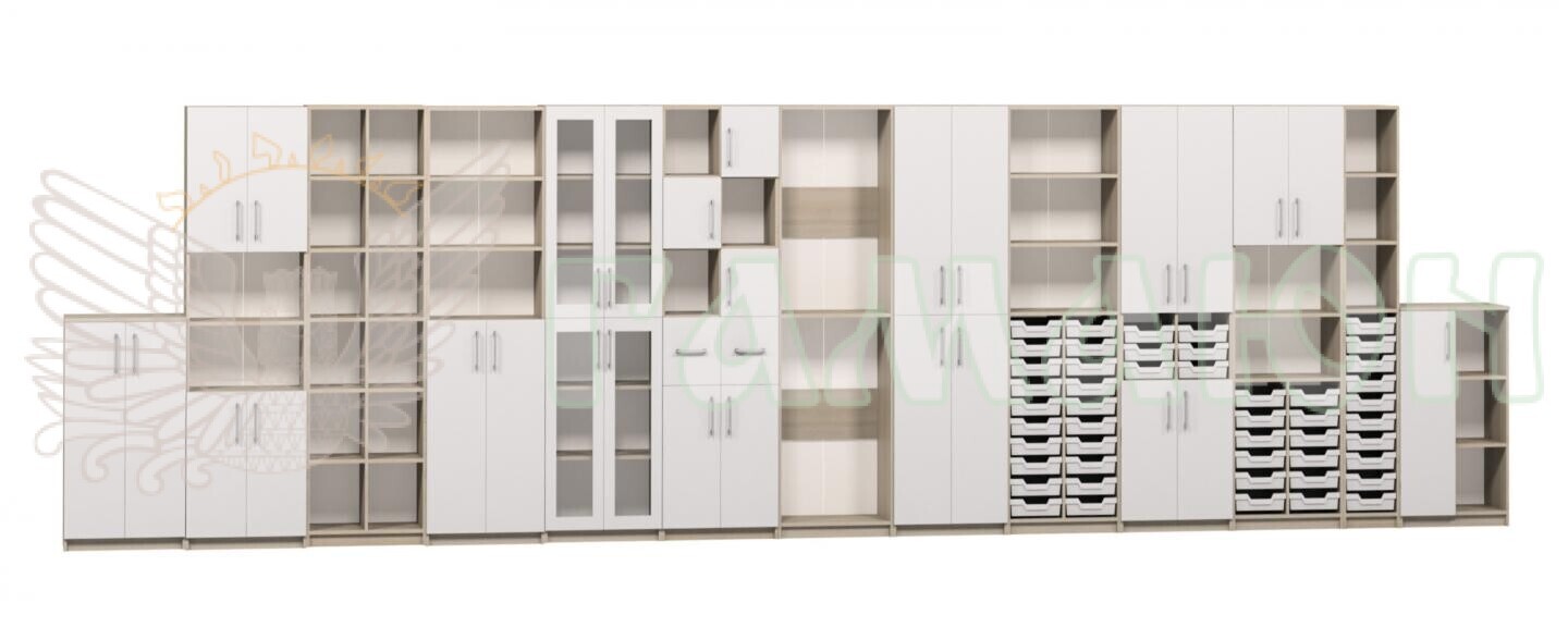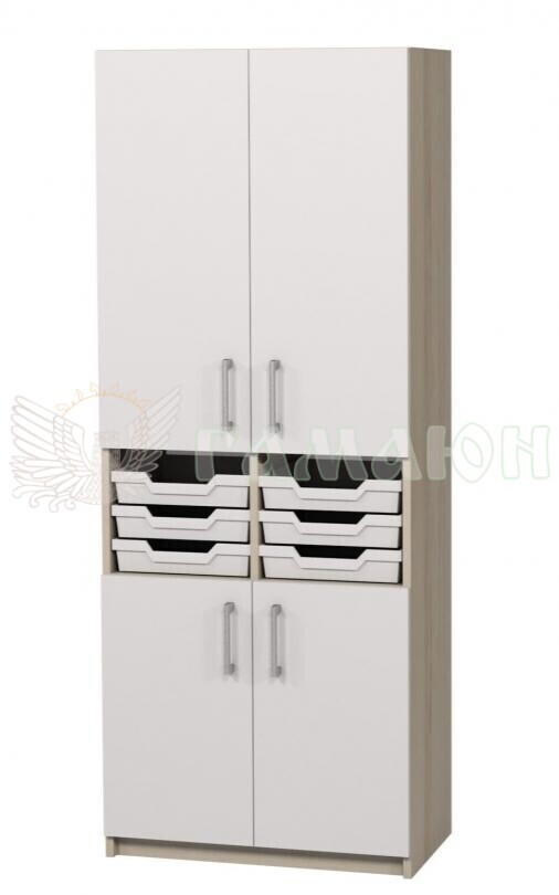 Опис виробу: Шафа призначена для ергономічного зберігання навчального приладдя, дидактичних матеріалів, канцтоварів у класах молодших і старших школярів. Фасад підтримує концепцію оформлення навчального простору.