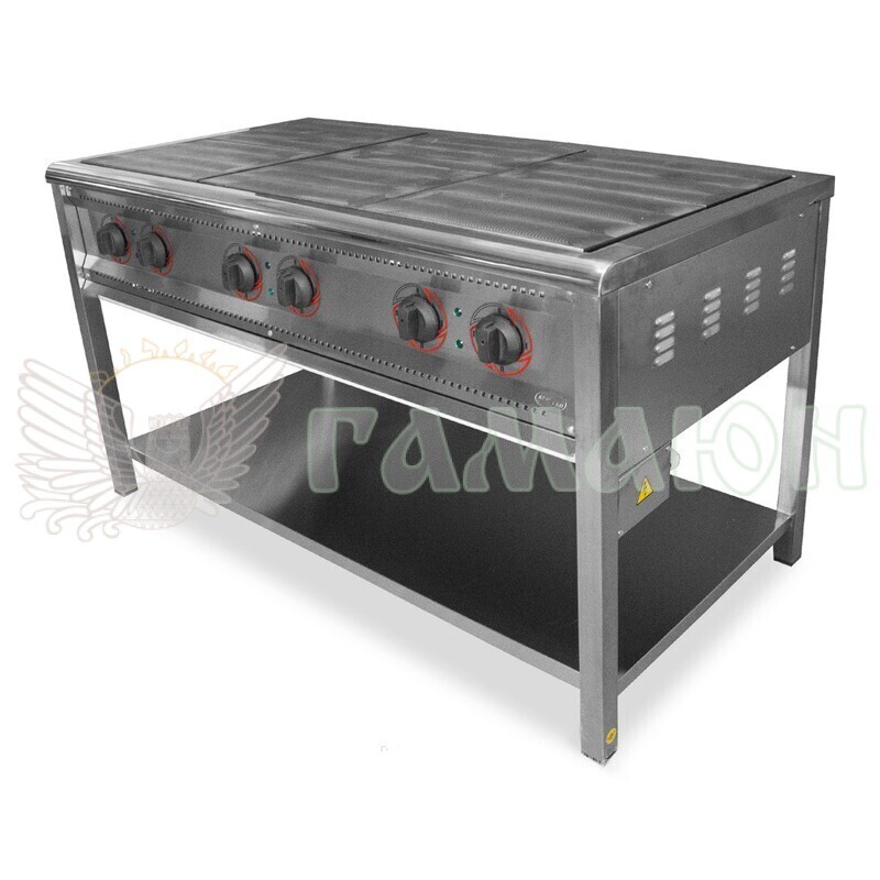 Плита виготовлена ​​з високоякісного чавуну і нержавіючої сталі і розрахована на використання в умовах високих навантажень. Конфорки розігріваються рівномірно по всій площі і утворюють суцільне робоче середовище, що дає можливість використовувати посуд різних розмірів.