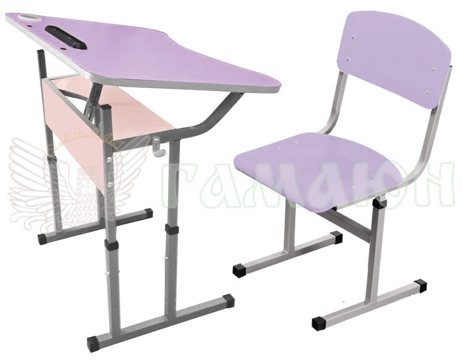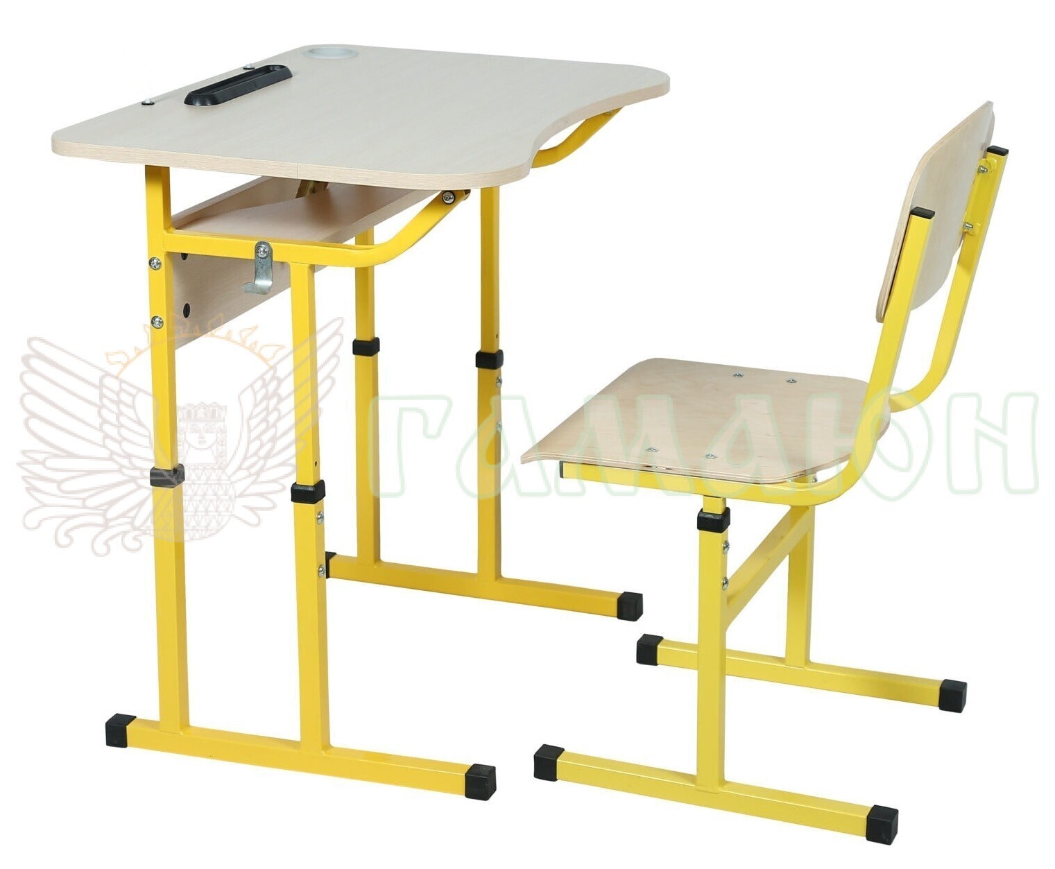 Комплект стіл учнівський 1-місний з регулюванням кута нахилу стільниці та полицею, ростова група №3-6 + стілець Т-подібний на квадратній трубі, №3-6