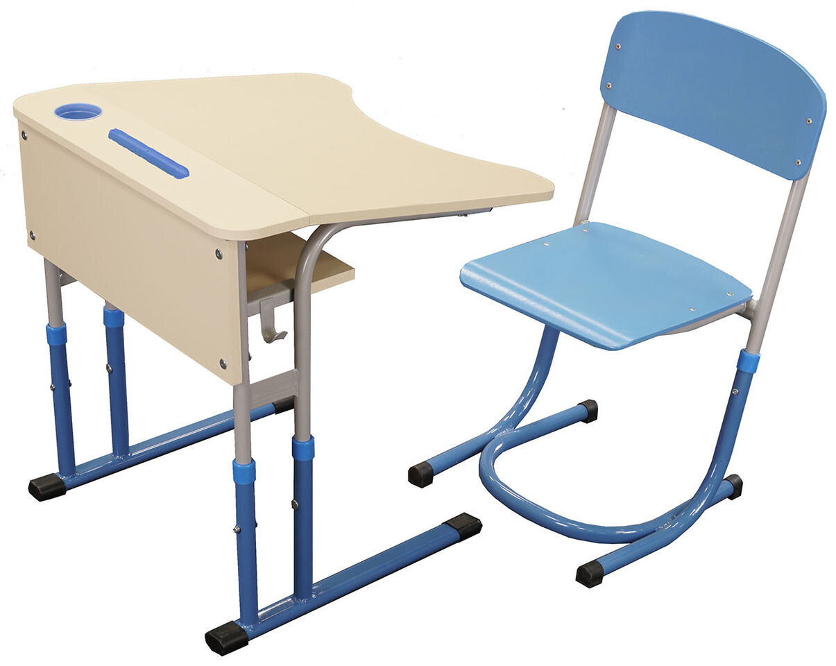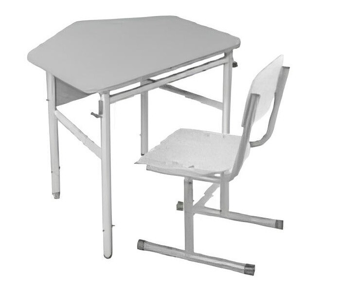 Комплект №3-6 Стіл 1-місний з регулюванням кута нахилу стільниці + стілець Т-подібний (квадратна труба)
